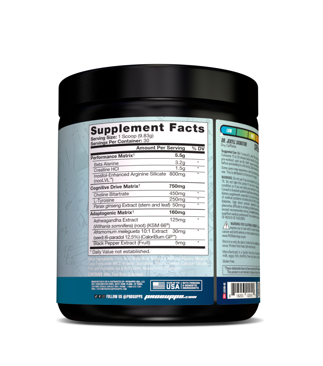 Introducing Dr. Jekyll Signature- a pre-workout designed to boost strength, focus and endurance, with ZERO caffeine. Whether you are hitting the gym late at night, or just not a fan of caffeine, Dr. Jekyll Signature has you covered. Enhance your performance with loads of Beta-Alanine to improve endurance, Creatine for maximum power and nooLVL for amazing pumps. Stay locked-in with Choline and L-Tyrosine. Plus added Calorie Burn to heat things up and help you break a sweat.†